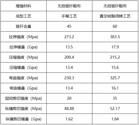 手糊工艺防雨帽和真空浇注工艺性能对比: